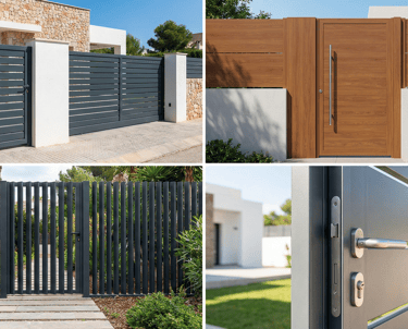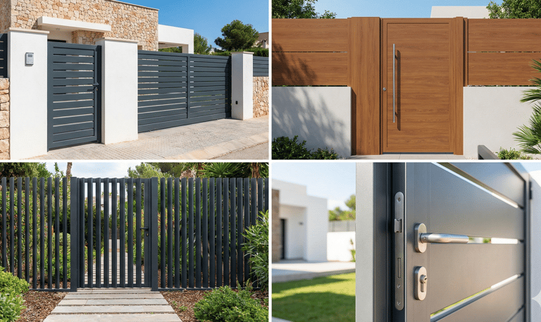 Estética a Juego: Diseñamos la puerta peatonal siguiendo exactamente el mismo modelo de lamas o panel que su valla o puerta de garaje, creando una fachada limpia y uniforme.